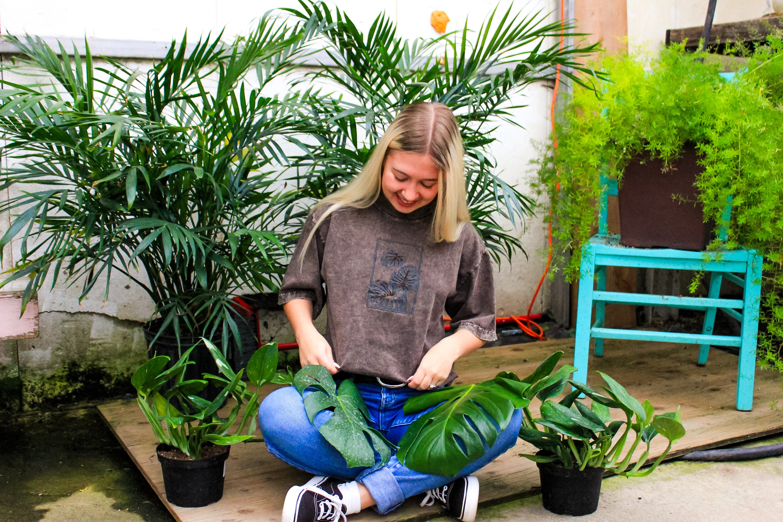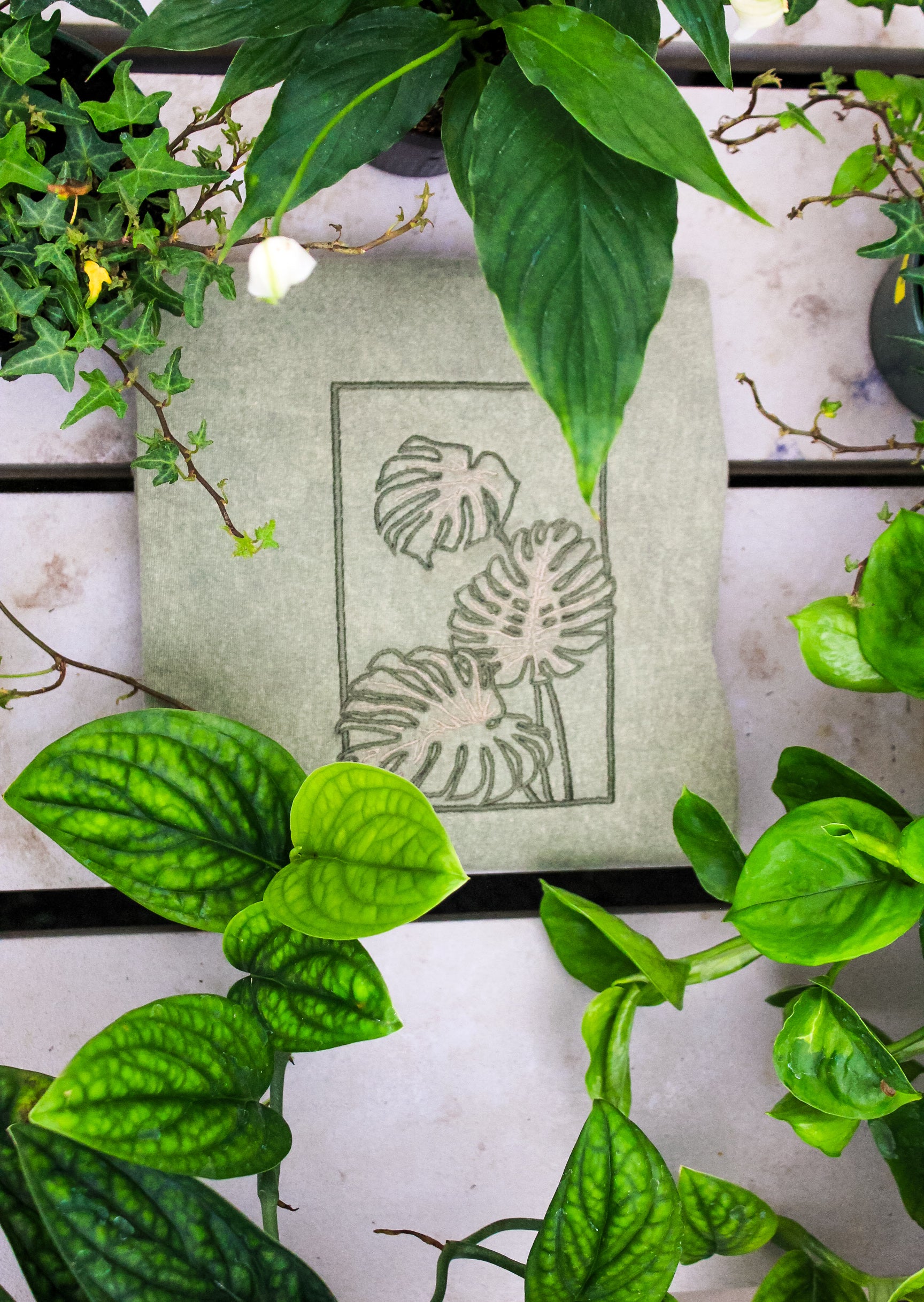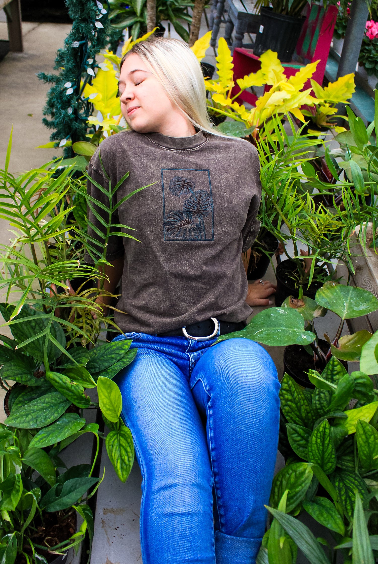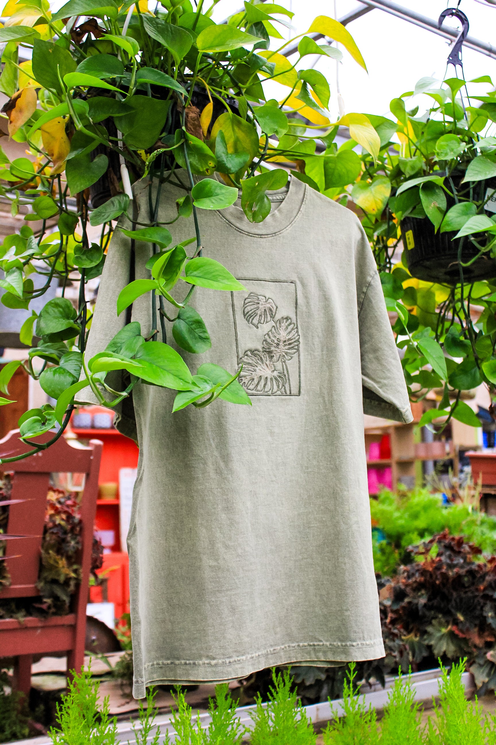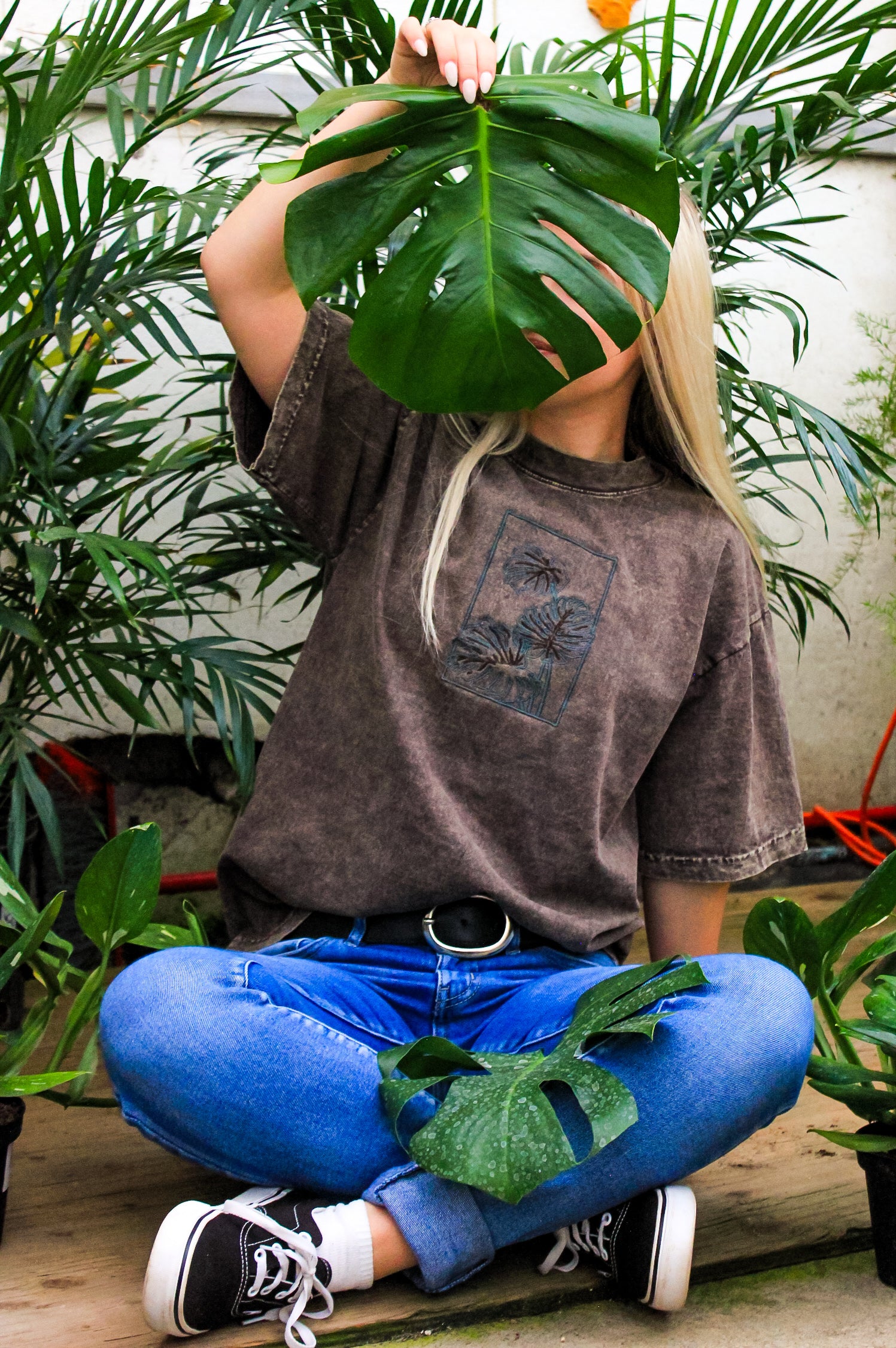 Elevate your everyday essentials with this effortlessly cool mineral wash Boxy Tee, featuring a delicately embroidered monstera plant for a subtle botanical touch. Made from soft, breathable cotton, its oversized silhouette offers a relaxed, unstructured fit that flatters all body types.
