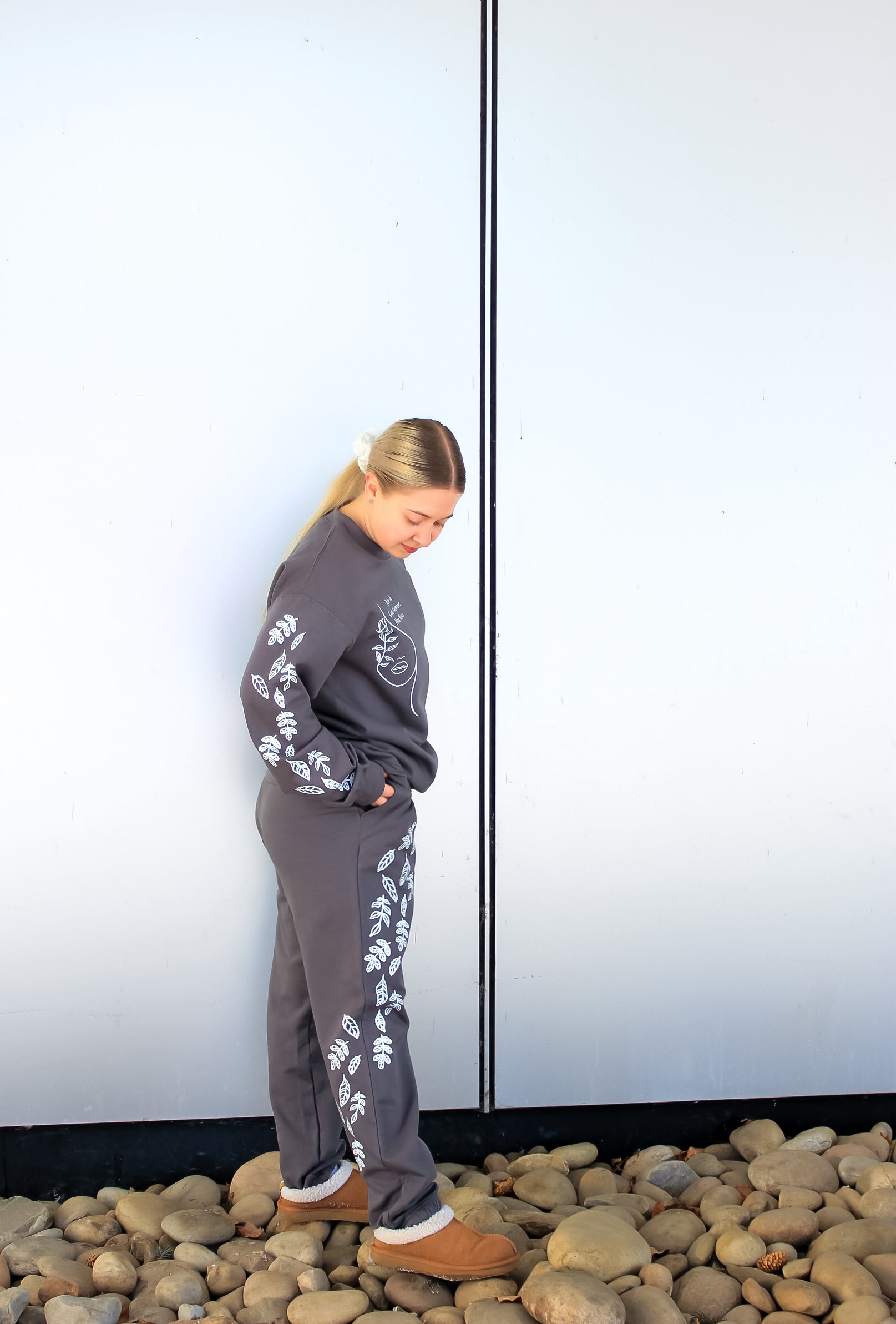 Grounded, Comfortable, and made to move with you. The Mother Nature sweatpants are designed for the days you’re slowing down, levelling up, and becoming your true self. Featuring a flowing botanical leaf design down the leg, these sweats symbolize growth in motion - rooted, natural, and always evolving. Whether your decide to pair them with the matching crewneck or cozying up in them on their own I hope they bring you comfort and meaning in your everyday life.